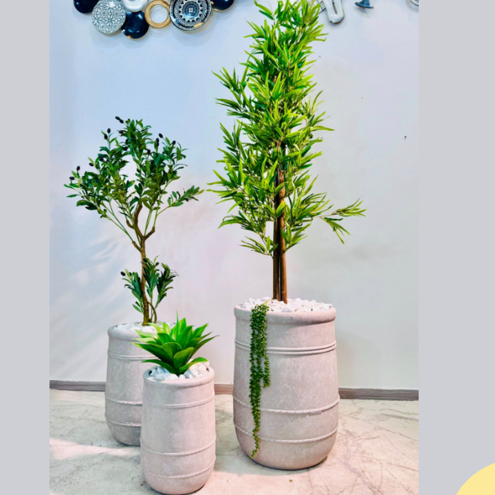 עציצים דקורטיביים בסגנון מודרני-אלגנטי, המוסיפים ירוק טבעי ומראה יוקרתי לכל חלל. השילוב בין גוון האבן האפור לבין הירוק הרענן מעניק תחושת רוגע, טבע וניקיון עיצובי. ללא צורך בתחזוקה – פתרון אידיאלי לעיצוב סלון, חדרי אירוח, משרדים ולובי יוקרתי.