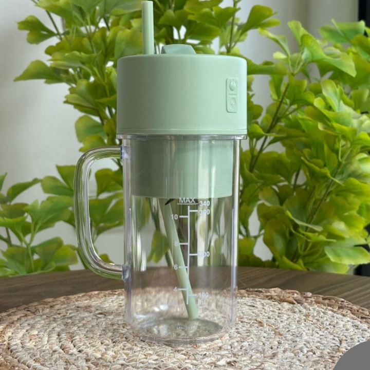 🥤 מדובר בבלנדר קטן עם כוס מובנית, שתוכלו להכין בה שייקים, מיצים או משקאות קרים ולשתות ישירות דרך הקש.