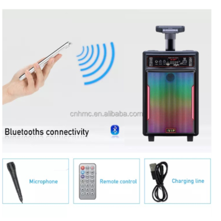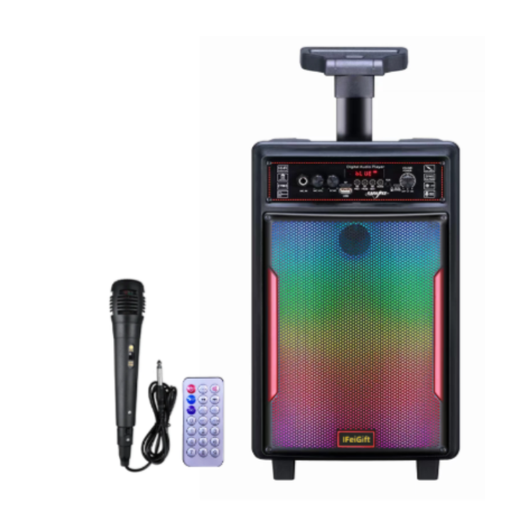 רמקול קריוקי אלחוטי נייד עם מיקרופון, שלט ופנסי LED