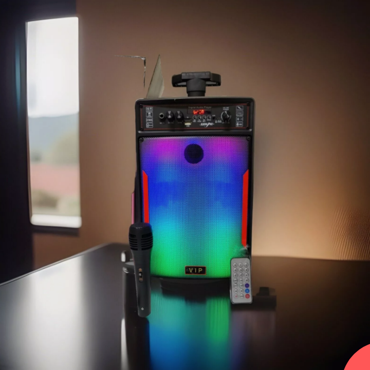 רמקול קריוקי עוצמתי עם סאונד מרשים במיוחד ובאס חזק, המשלב עיצוב מודרני עם פונקציונליות גבוהה.