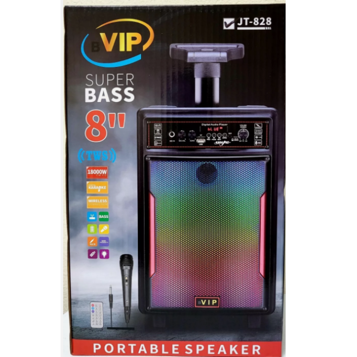 כולל חיבור אלחוטי, שלט רחוק, מיקרופון חוטי, ותאורת LED צבעונית ליצירת אווירת מסיבה מושלמת.